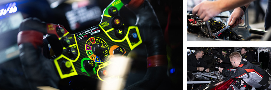 The Huracán GT3 EVO2 was designed and developed by Lamborghini Squadra Corse based on the Huracán STO, with which it shares essential design elements, the fact that it is equipped with rear-wheel drive only, and its naturally aspirated V10 engine. The GT3 EVO2 fully complies with new FIA 2022 technical regulations and features original aerodynamic innovations and an all-new intake system.