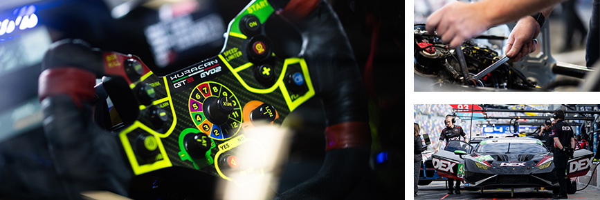 The Huracán GT3 EVO2 was designed and developed by Lamborghini Squadra Corse based on the Huracán STO, with which it shares essential design elements, the fact that it is equipped with rear-wheel drive only, and its naturally aspirated V10 engine. The GT3 EVO2 fully complies with new FIA 2022 technical regulations and features original aerodynamic innovations and an all-new intake system.
